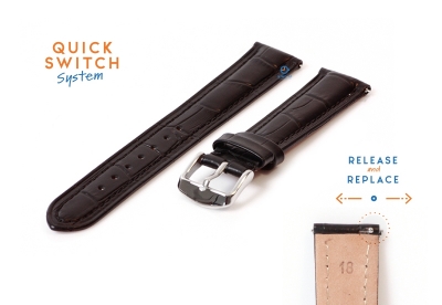 Premium leren horlogeband 18mm croco. Deze mooie horlogeband heeft een alligator toplaag en is bij elk horloge te combineren. Het horlogebandje is gemaakt van hoge kwaliteit leder en is bij de gesp- en bevestigingszijde extra verstevigd, waardoor de levensduur van het horlogebandje aanzienlijk wordt verlengd. De stiksels zijn met de hand gestikt en hebben dezelfde kleur als de toplaag van deze horlogeband.