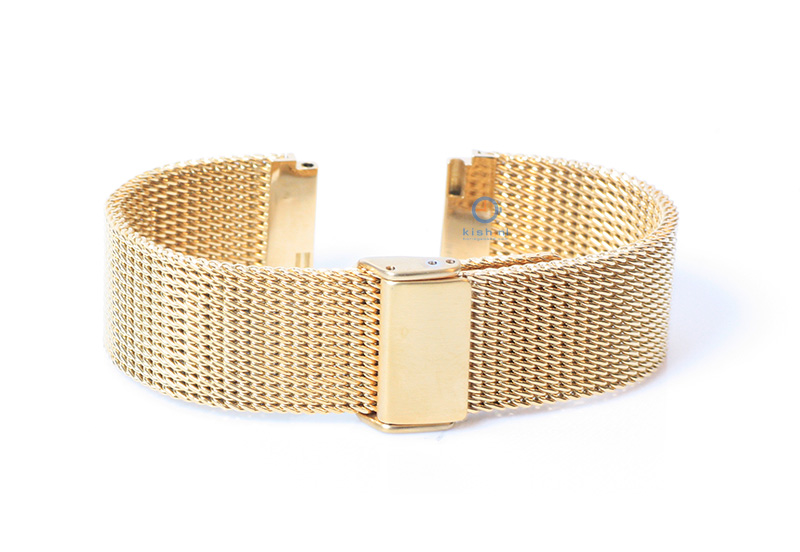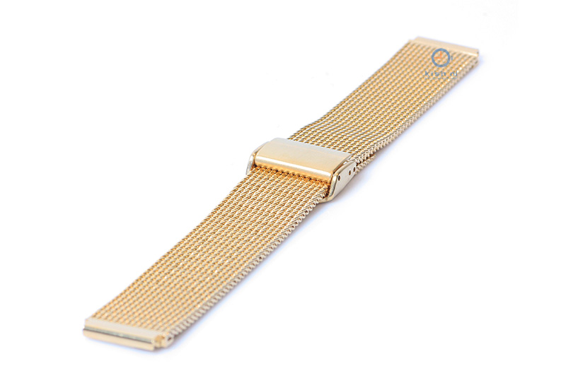 Horlogeband 18mm milanees goud. Deze milanese horlogeband is gemaakt van goede kwaliteit gevlochten staal. Hierdoor krijgt jouw horloge een klassieke, maar toch ook stoere look. Het horlogebandje word gesloten met een verstelbare sluiting, waardoor het bandje geschikt is voor meerdere polsmaten.