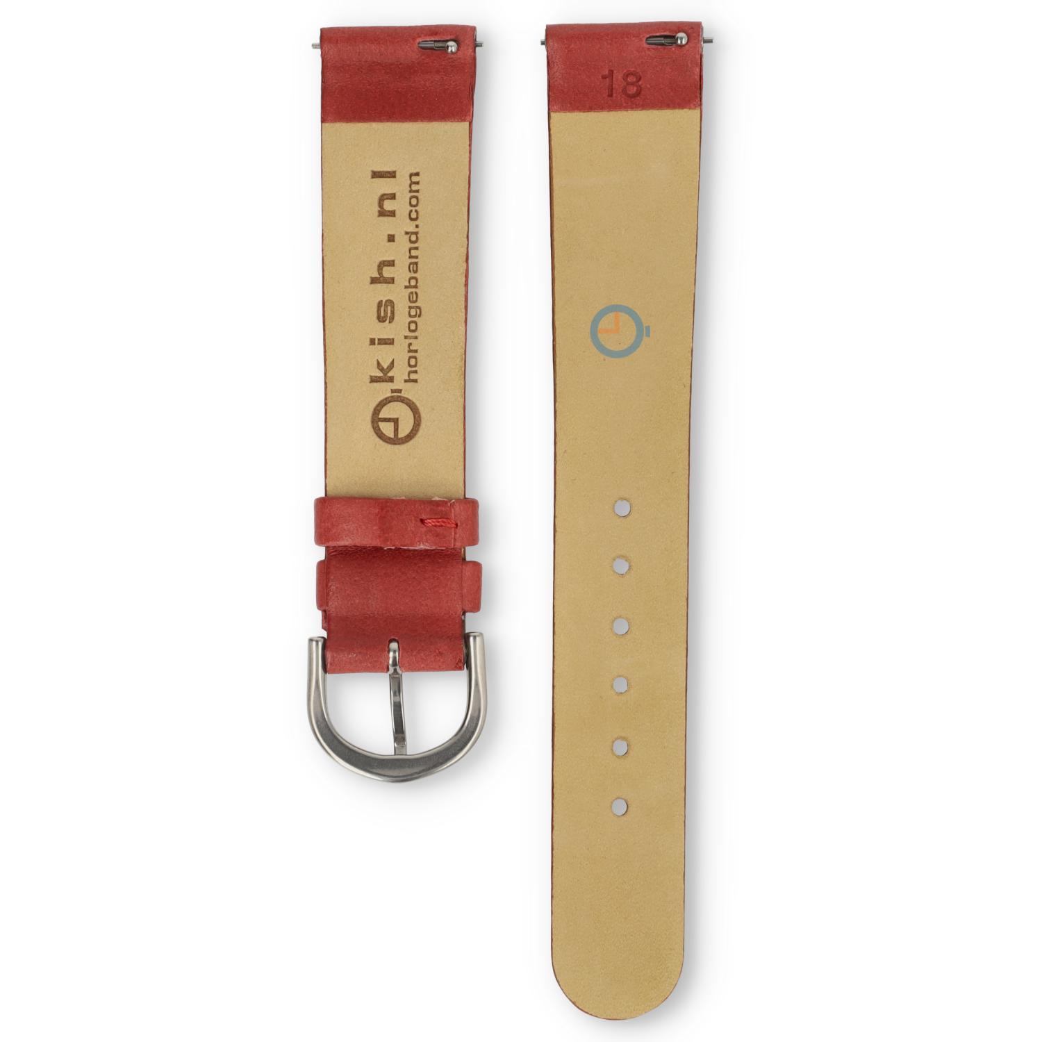 Premium horlogeband 18mm rood leer. Het horlogebandje is gemaakt van bijzonder stevig leer, maar draagt erg fijn door zijn zachte voering. Deze platte horlogeband heeft geen stiksels waardoor hij een tijdloos karakter heeft. De horlogeband is aan de bevestigingszijde extra verstevigd, zodat uitscheuren bijna onmogelijk is.