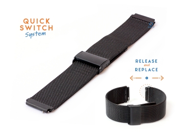 Deze milanese horlogeband is 22mm breed, maar heeft een aanzet van 18mm. Het horlogebandje is eenvoudig aan jouw horloge te bevestigen met het Quick Switch systeem. Zo vervang jij jouw horlogeband binnen enkele seconden!