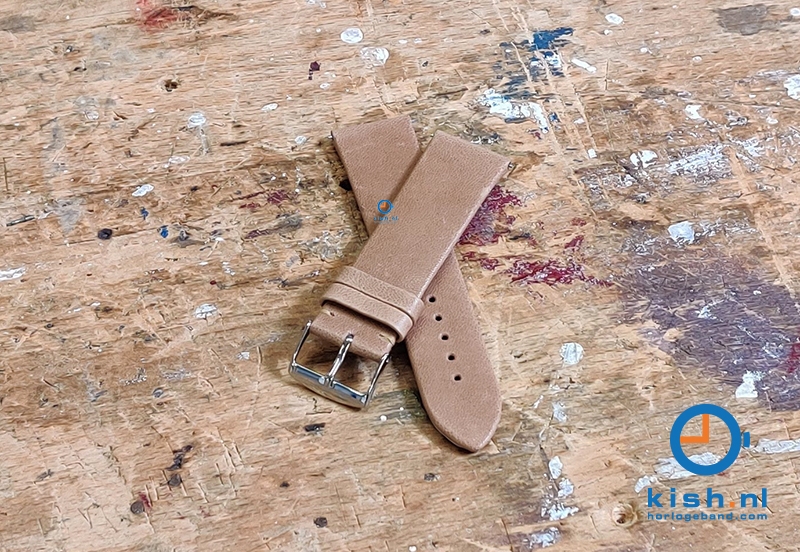 Universeel horlogebandje gemaakt van echt leer. Deze horlogeband is met de hand gemaakt, waardoor het horlogebandje tot in de puntjes is afgewerkt. Dit geeft deze band de beste kwaliteit. Deze horlogeband heeft een rustige zand kleur, waardoor deze bijna bij elk horloge past.