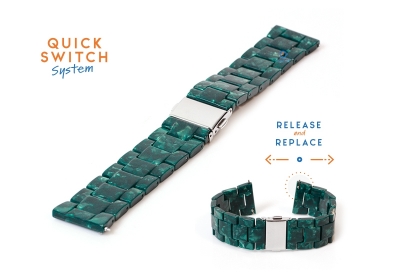 Je kunt het bandje plaatsen met gewone springbars of de makkelijke Quick Switch pinnen. Check de PRODUCTBUNDEL voor de juiste pinnen. Een lichtgewicht, universeel horlogebandje die je plaatst op elk horloge met een 20mm aanzet.