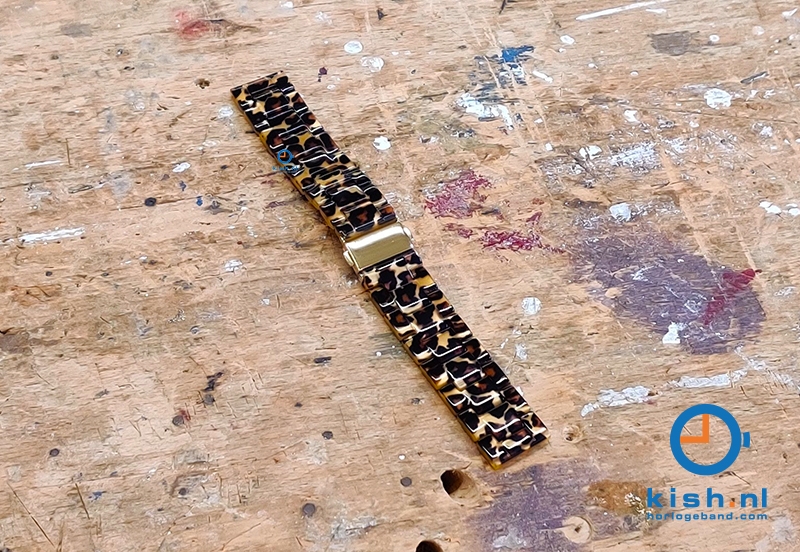 Draag jouw horloge of smartwatch in stijl met deze geweldige horlogeband met luipaard print. Jouw outfit maak je compleet met deze premium kunststof Luipaard band met gouden (druk)vouwsluiting waarvan de schakels verwijderbaar zijn, zodat het bandje precies op maat gemaakt kan worden.