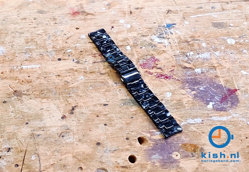 Deze design horlogeband geeft een bijzondere look aan jouw horloge. Let wel op dat deze band iets minder sterk is dan een geschakelde stalen horlogeband.