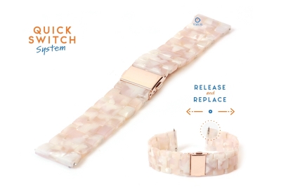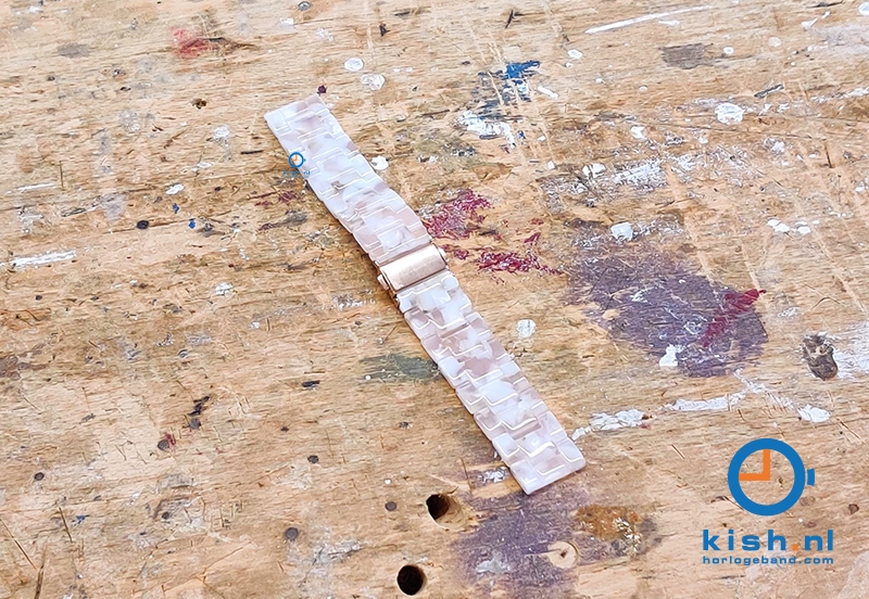 Draag jouw horloge of smartwatch in stijl met deze geweldige horlogeband met Turtle effect. Jouw outfit maak je compleet met deze premium kunststof Turtle band met rosegouden (druk)vouwsluiting waarvan de schakels verwijderbaar zijn, zodat het bandje precies op maat gemaakt kan worden.