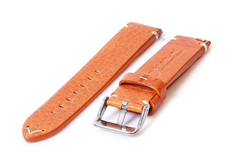 Premium horlogeband 20mm vintage bruin leer. Het horlogebandje is gemaakt van uitstekende kwaliteit kalfsleer en is afgewerkt tot in de puntjes. Deze universele horlogeband heeft beige stiksels wat het horlogebandje een gave vintage look geeft. De horlogeband is aan de bevestigingszijde extra verstevigd, zodat uitscheuren bijna onmogelijk is.