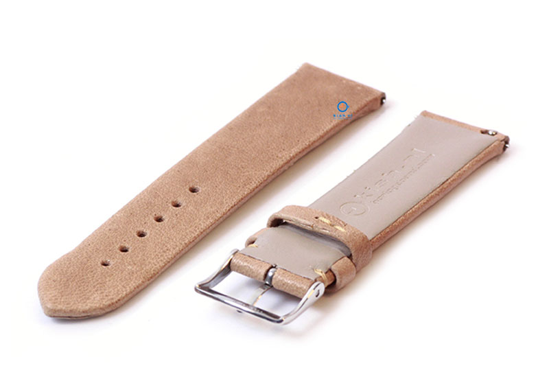 Luxe horlogeband, maat 20mm. De stevige horlogeband van leer heeft een prachtige zandkleur met gladde, vlakke structuur en een stiksel die met de hand is gezet. Je bevestigt deze horlogeband met het handige Quick Switch systeem. Hierdoor vervang jij nog makkelijker jouw horlogebanden!