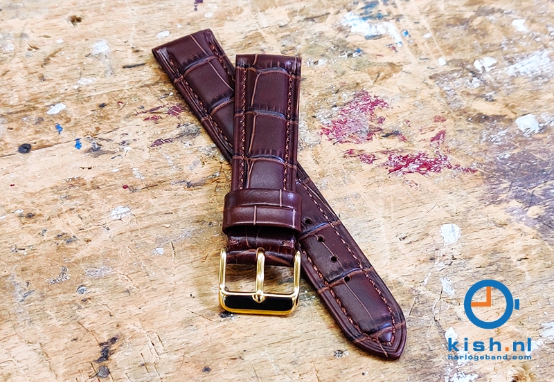 Premium horlogeband 22mm croco leer. Het horlogebandje is gemaakt van uitstekende kwaliteit leder en tot in de puntjes afgewerkt. De bruine stiksels zijn met de hand gestikt, in dezelfde kleur als de bruine alligator toplaag. Deze universele horlogeband is bij de gesp- en bevestigingszijde extra verstevigd, zodat uitscheuren bijna onmogelijk is.
