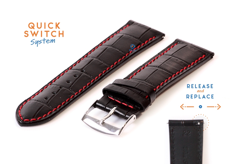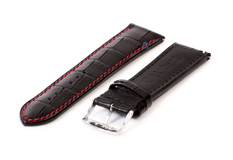 Horlogeband 22mm croco leer zwart - rood