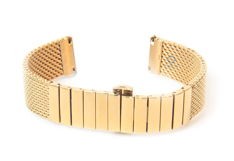 Universele milanese horlogeband 22mm goud. Deze milanese horlogeband heeft een comfortabele vlindersluiting en is geschikt voor horloges met een 22mm aanzet. Het horlogebandje is eenvoudig aan uw horloge te bevestigen met 22mm springbars en een Springbar removal tool.