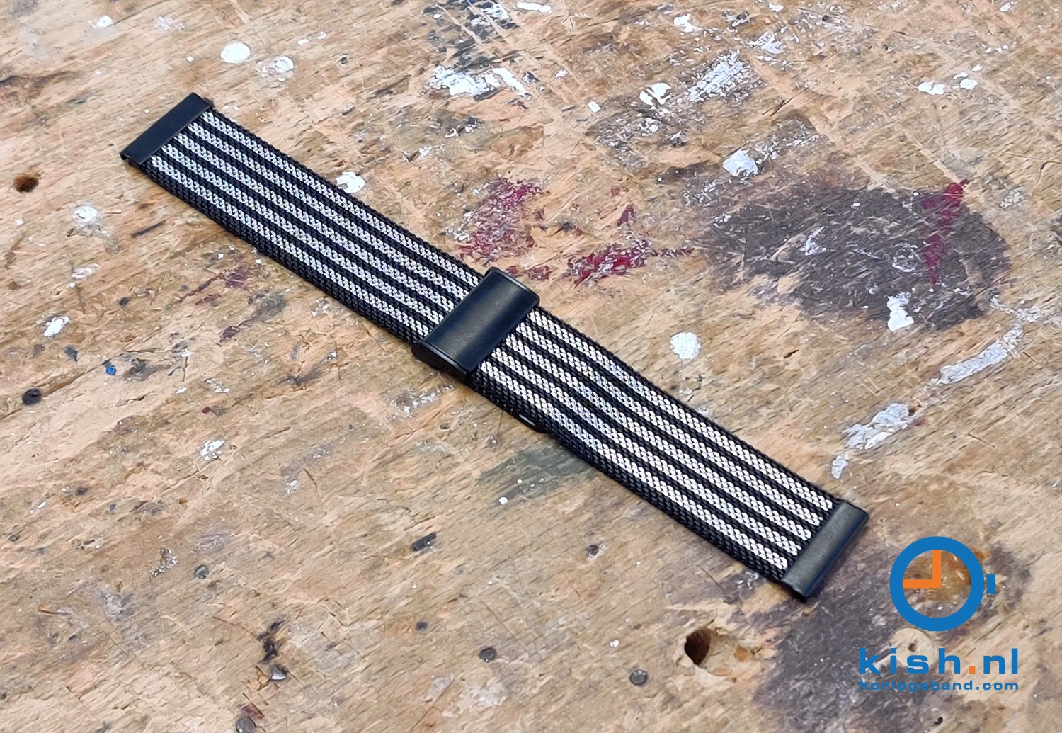 Horlogeband 22mm milanees zwart/zilver - Quick Switch (FIJN)