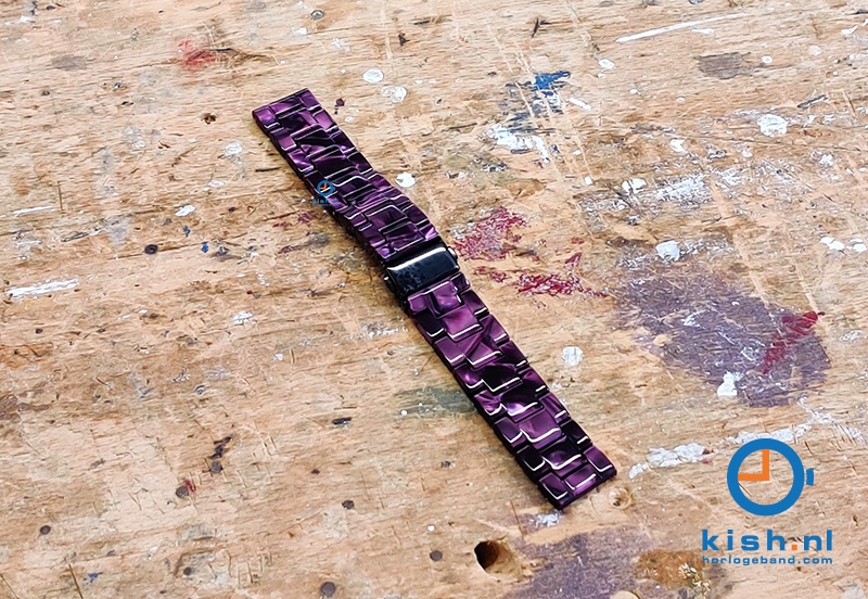 Draag jouw horloge of smartwatch in stijl met deze geweldige horlogeband met Graniet effect. Jouw outfit maak je compleet met deze premium kunststof Graniet band met zwarte (druk)vouwsluiting waarvan de schakels verwijderbaar zijn, zodat het bandje precies op maat gemaakt kan worden.