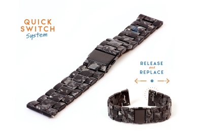 Draag jouw horloge of smartwatch in stijl met deze geweldige horlogeband met graniet effect. Jouw outfit maak je compleet met deze premium kunststof graniet band met zwarte (druk)vouwsluiting waarvan de schakels verwijderbaar zijn, zodat het bandje precies op maat gemaakt kan worden.