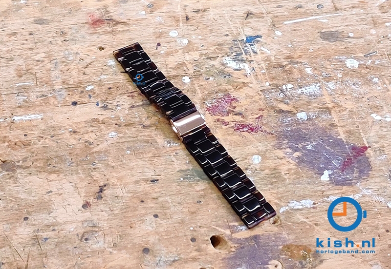 Draag jouw horloge of smartwatch in stijl met deze geweldige horlogeband met Turtle effect. Jouw outfit maak je compleet met deze premium kunststof Turtle band met rosegold (druk)vouwsluiting waarvan de schakels verwijderbaar zijn, zodat het bandje precies op maat gemaakt kan worden.