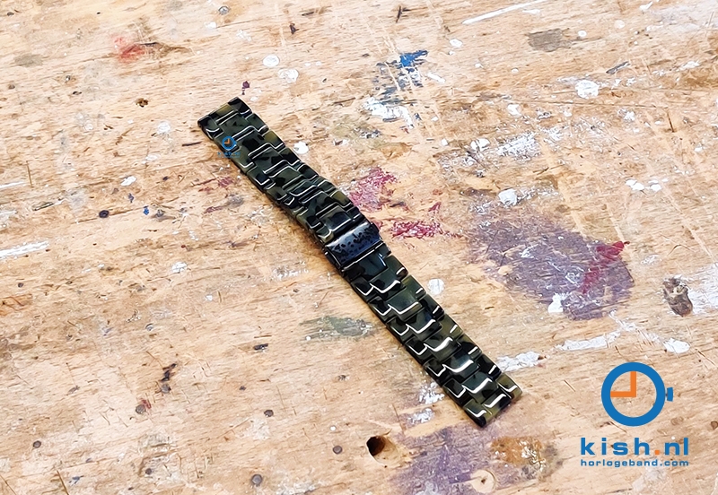 Draag jouw horloge of smartwatch in stijl met deze geweldige horlogeband met Turtle effect. Jouw outfit maak je compleet met deze premium kunststof Turtle band met zwarte (druk)vouwsluiting waarvan de schakels verwijderbaar zijn, zodat het bandje precies op maat gemaakt kan worden.