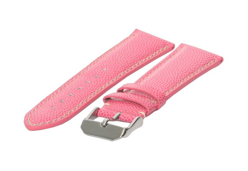 Horlogeband 22mm roze leer. Universeel horlogebandje gemaakt van echt kalfsleer. Deze horlogeband heeft een roggen structuur en is handmatig gestikt. Eenvoudig zelf te monteren aan uw horloge met behulp van een spring bar removal tool.