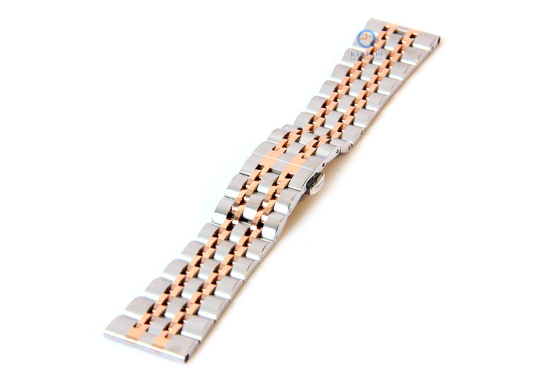 Universele horlogeband 22mm zilver goud. Deze edelstalen horlogeband heeft een comfortabele vlindersluiting en is geschikt voor horloges met een 22mm aanzet. Het horlogebandje is eenvoudig aan uw horloge te bevestigen met 22mm springbars en een Springbar removal tool. Bekijk alle stalen horlogebanden in onze shop.