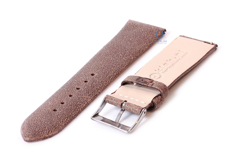 Premium horlogeband 22mm vintage bruin leer. Het horlogebandje is gemaakt van buitengewoon goede kwaliteit geruwd leer. Het is het soort leer dat door het dragen alleen mooier word. Deze universele horlogeband heeft geen stikels wat het horlogebandje een stijlvolle look geeft en makkelijk te combineren is. De horlogeband is aan de bevestigingszijde extra verstevigd, zodat uitscheuren bijna onmogelijk is.