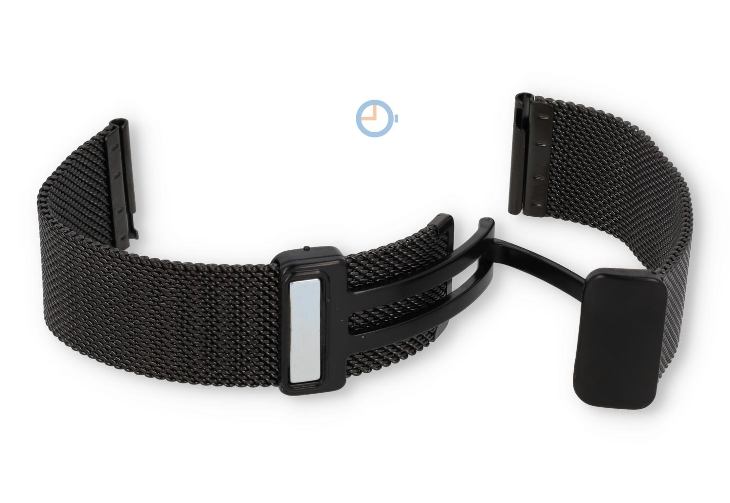 Horlogeband 22mm zwart staal - magnetische vouwsluiting | ontworpen voor diegenen die waarde hechten aan zowel stijl als gemak. Dit zwart stalen bandje biedt de luxe die elke horlogeliefhebber kan waarderen.Vergeet het gedoe van gespen of pinnetjes. De geavanceerde magnetische vouwsluiting garandeert een naadloze en stevige pasvorm die met één hand te bevestigen is.