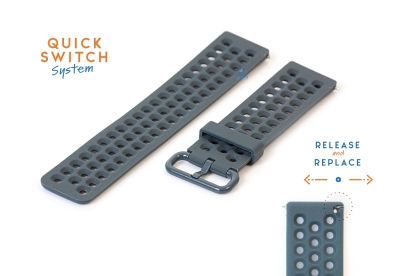 Horlogeband 23mm perforated siliconen donkergrijs