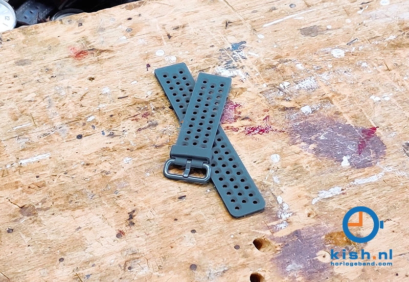 Universele siliconen horlogeband van 23mm breed. Deze perforated horlogeband is gemaakt van flexibel siliconen, dit draagt niet alleen erg fijn maar is ook waterbestendig. Door de perforated gaatjes ziet het horlogebandje er niet alleen super sportief uit, maar ventileert het horlogebandje ook beter.
