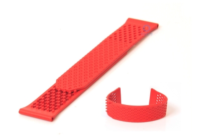Horlogeband 23mm rood siliconen. Deze rode horlogeband is gemaakt van siliconen. Zweet-, regen-, spat- en waterbestendig, ideaal voor intensieve trainingen. Het voordeel van een siliconen horlogeband is dat deze erg soepel is en hierdoor is het bandje heerlijk te dragen. Het horlogebandje sluit door middel van de 3D print, deze heeft de Pulling Force-test doorstaan. Deze horlogeband is eenvoudig zelf te monteren aan uw horloge met 23mm springbars en een springbar removal tool.