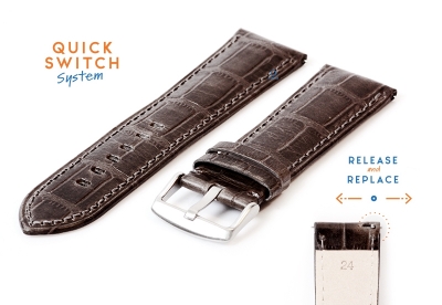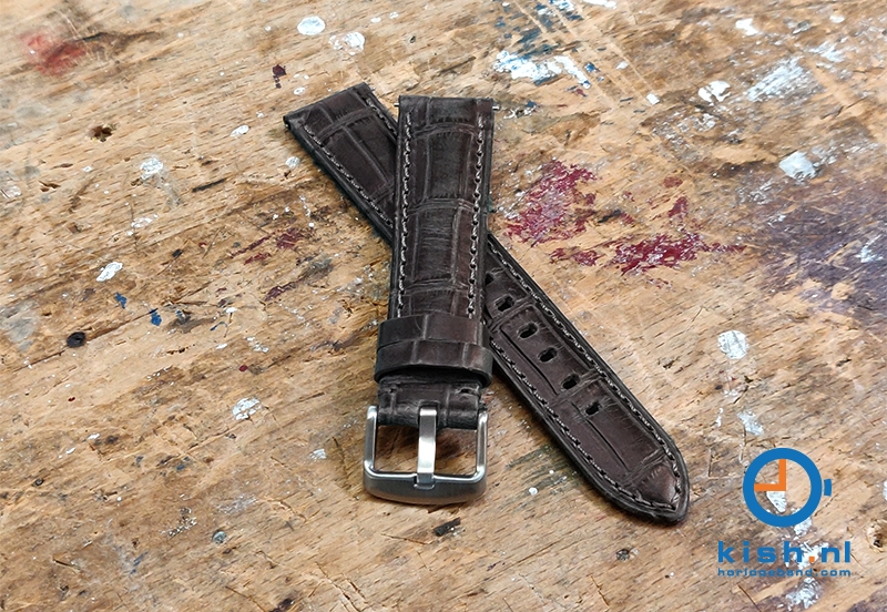 Premium horlogeband 24mm croco leer. Het horlogebandje is gemaakt van de beste kwaliteit kalfsleder en tot in detail afgewerkt. De grijze stiksels zijn met de hand gestikt, wat goed bij de grijze alligator toplaag kleurt. Deze universele horlogeband is bij de gesp- en bevestigingszijde extra verstevigd, zodat uitscheuren bijna onmogelijk is.