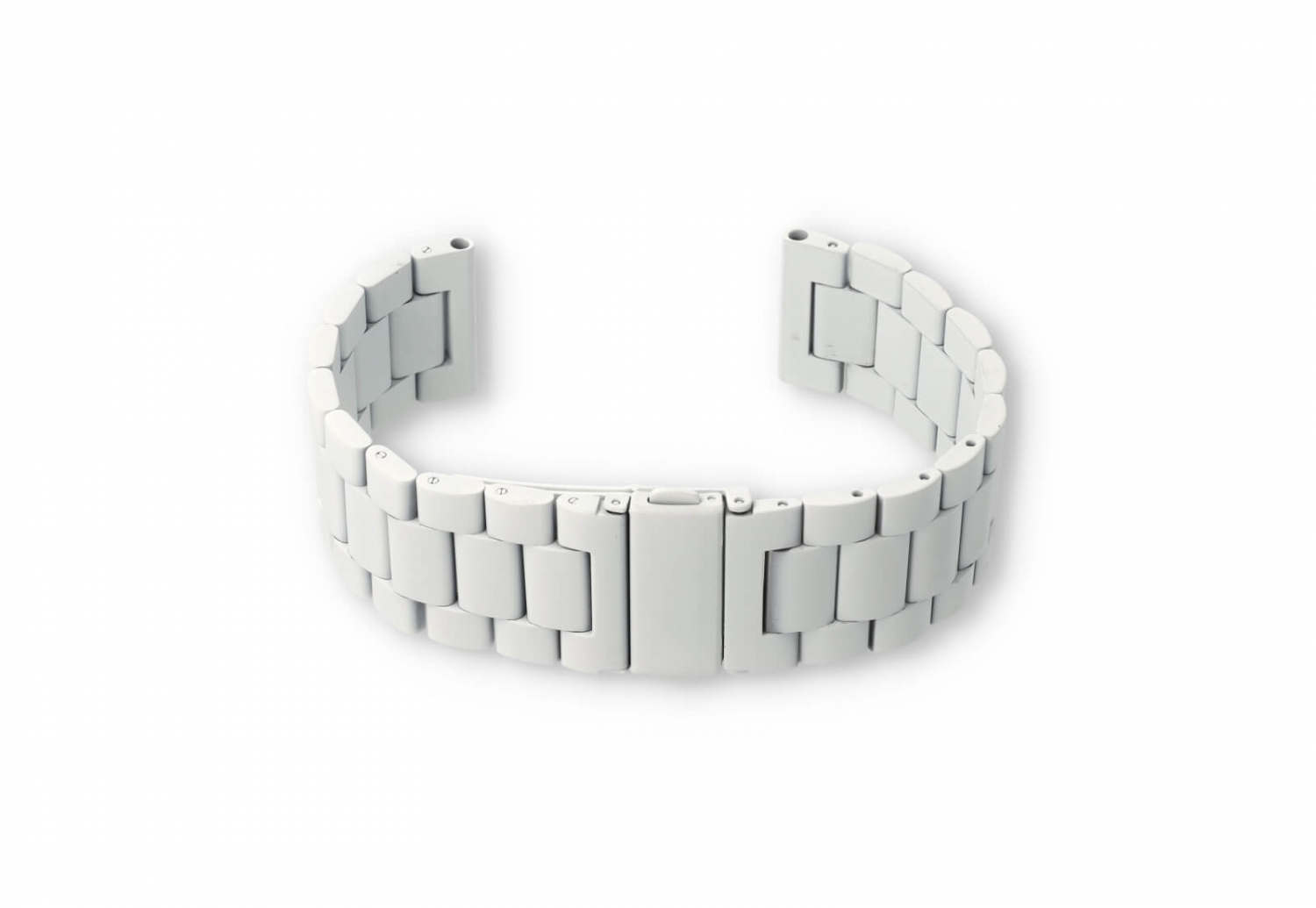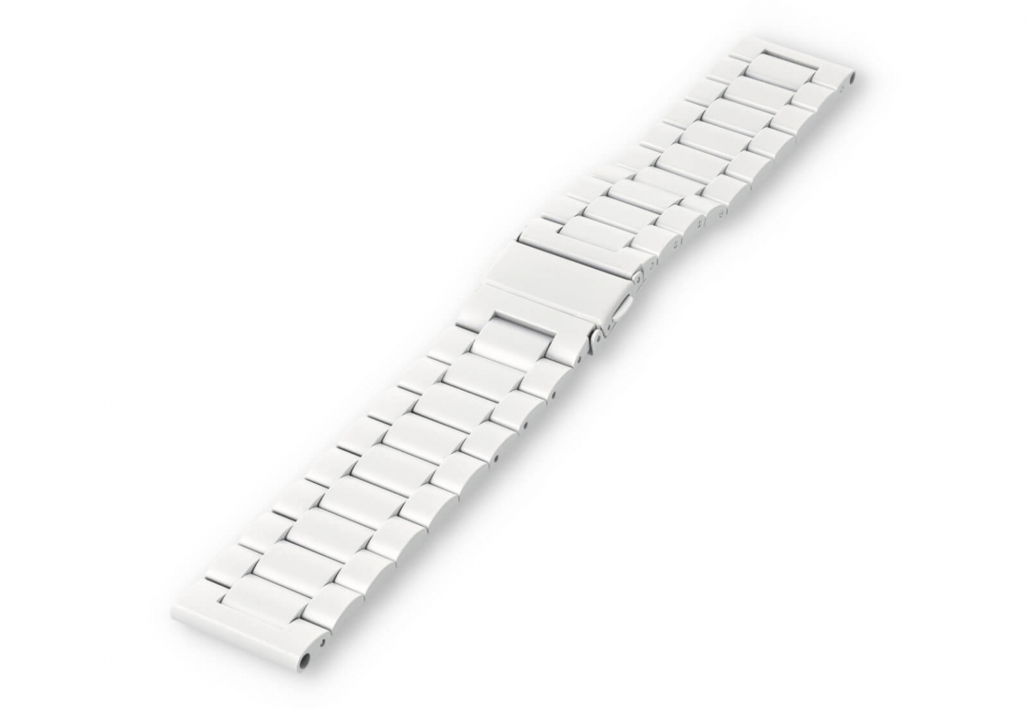 Universele horlogeband voor horloges met een 24mm aanzet. Het harde en zuivere staal wordt verwerkt met hoge precisie en heeft een zeer lange levensduur. Dit witte horlogebandje bevestig je met 24mm spring bars. Gebruik de meest handige removal tool van onze webshop om het oude horlogebandje van jouw horloge af te halen.
