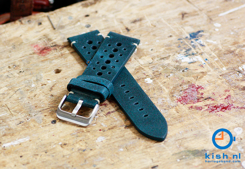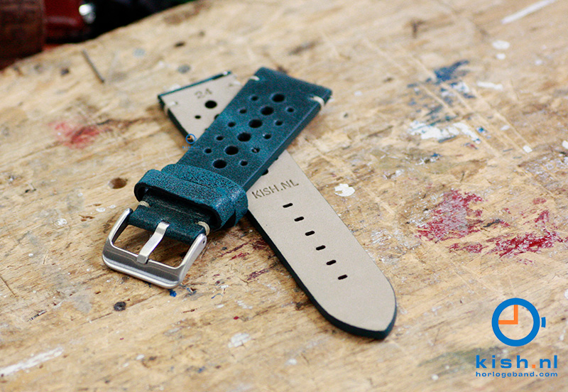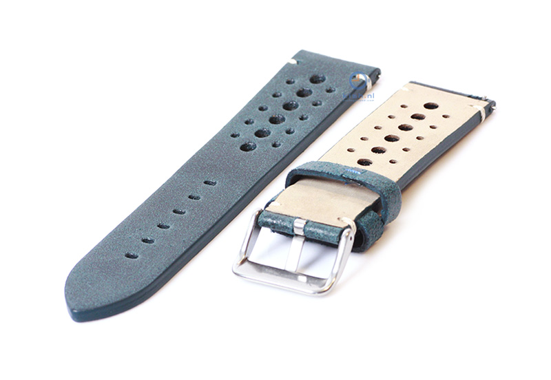 Premium horlogeband 24mm vintage perforated groen leer. Deze universele horlogeband is gemaakt van kalfsleer en tot in detail afgewerkt. Het horlogebandje heeft een buitengewoon uitstekende kwaliteit en word gesloten met een stevige gespsluiting. De geperforeerde gaten geven deze horlogeband een sportieve look. Door de extra versteviging aan de bevestigingszijde, wordt uitscheuren aanzienlijk verkleind.