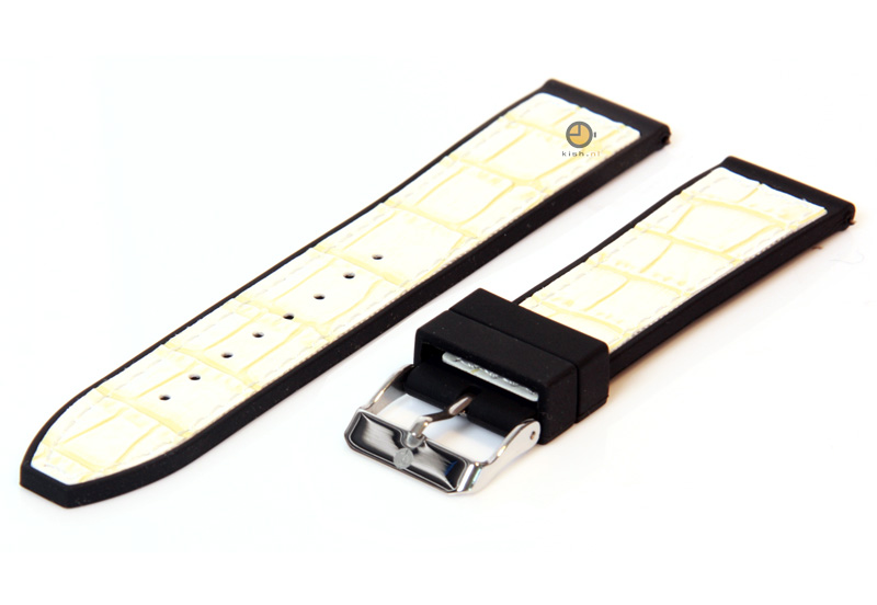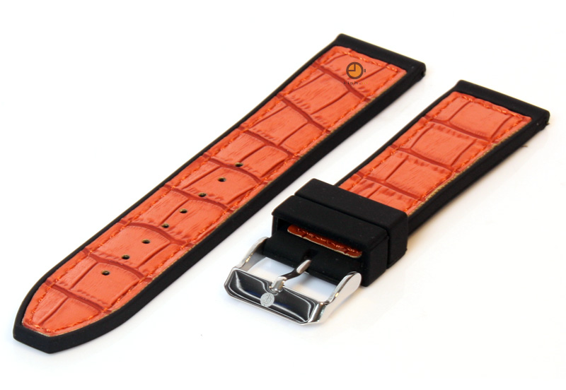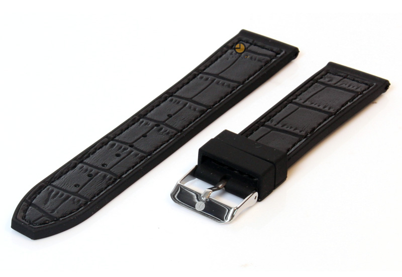 Universele Horlogeband 24mm zwart siliconen. Gemaakt uit een hoge kwaliteit rubber en edelstalen gesp. De horlogeband is voorzien van een laag croco-leder en rode stiksels. Met de handige springbar removal tool vervang je de horlogeband nog makkelijker zelf. Bekijk hiervoor de instuctievideo in onze shop.