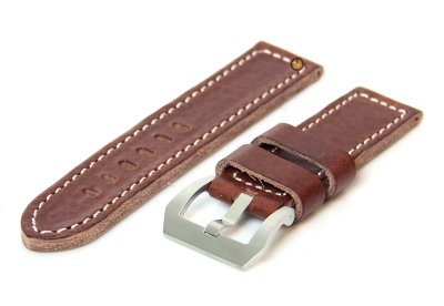 Universele Horlogeband 26mm bruin kalfsleder. Gemaakt uit een hoge kwaliteit leer met een wit stiksel en edelstalen panerai gesp. De band wordt bevestigd met springbars. Deze zijn eenvoudig zelf te monteren aan uw horloge, met een springbar removal tool. Bekijk alle leren horlogebanden in onze shop.