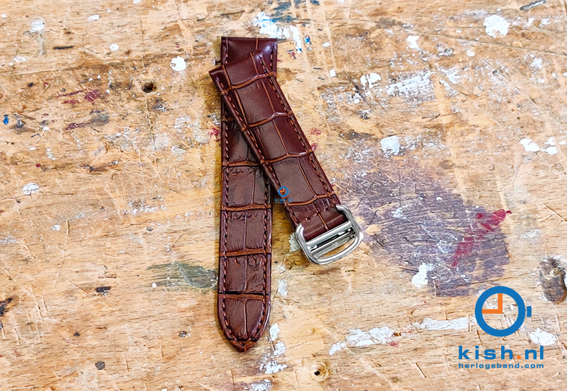 Betaalbare horlogeband voor Cartier horloges. Originele horlogebandjes voor Cartier zijn vaak duur en moeilijk verkrijgbaar. Wij hebben gezocht naar een goed alternatief incl. de welbekende Cartier-sluiting. Deze karakteristieke imitatie horlogeband heeft een mooie alligatorprint en is met uiterste precisie afgewerkt. Dit geeft een uitstekende kwaliteit voor een langere levensduur.