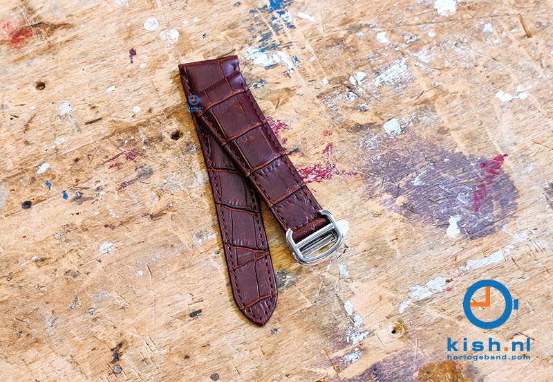 Betaalbare horlogeband voor Cartier horloges. Originele horlogebandjes voor Cartier zijn vaak duur en moeilijk verkrijgbaar. Wij hebben gezocht naar een goed alternatief incl. de welbekende Cartier-sluiting. Deze karakteristieke imitatie horlogeband heeft een mooie alligatorprint en is met uiterste precisie afgewerkt. Dit geeft een uitstekende kwaliteit voor een langere levensduur.