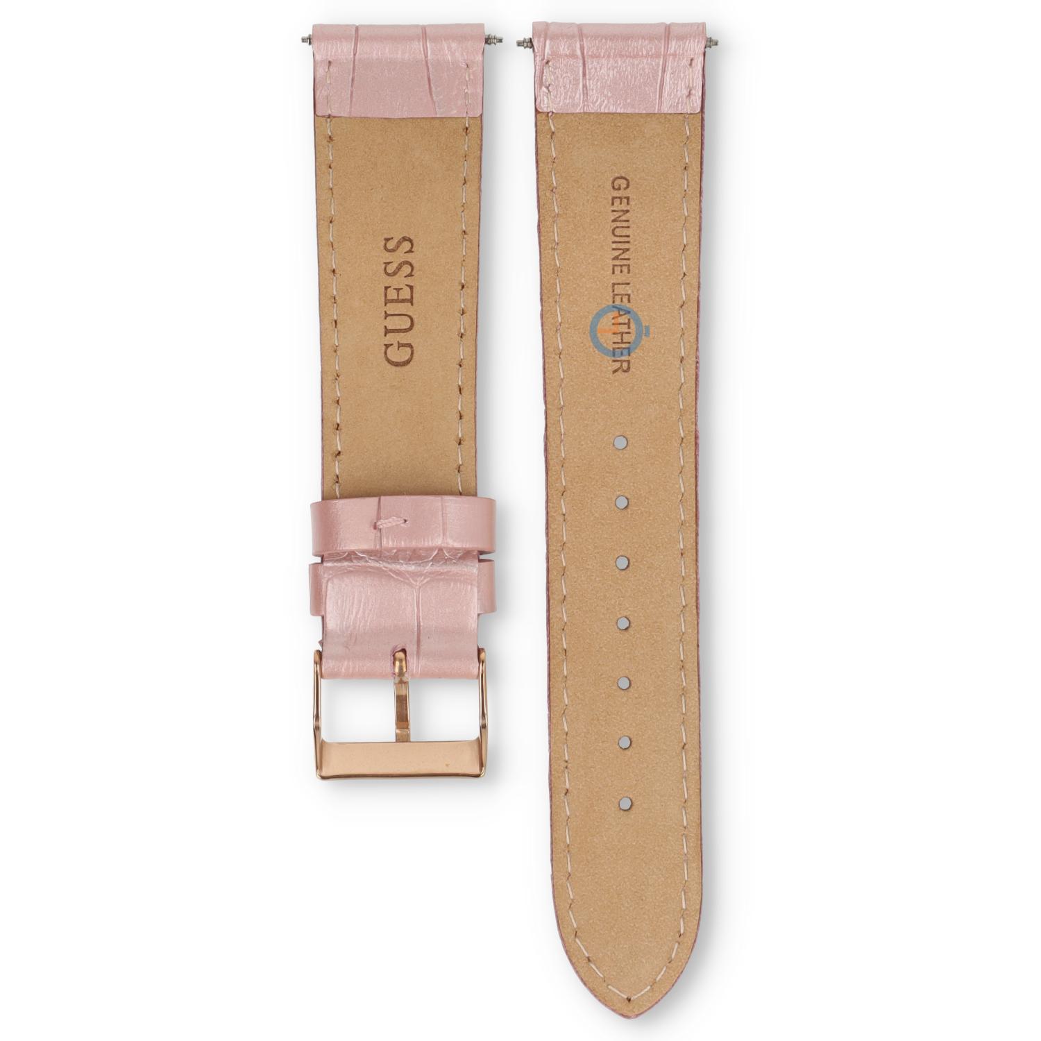 Originele Guess W0768L3 horlogeband. Deze roze leren Guess horlogeband is 20mm breed en een heeft en gespsluiting. De horlogeband wordt bevestigd met springbars. Deze zijn eenvoudig zelf te monteren aan uw Guess horloge met onze spring bar removal tool. Bekijk alle Guess horlogebanden in onze shop.