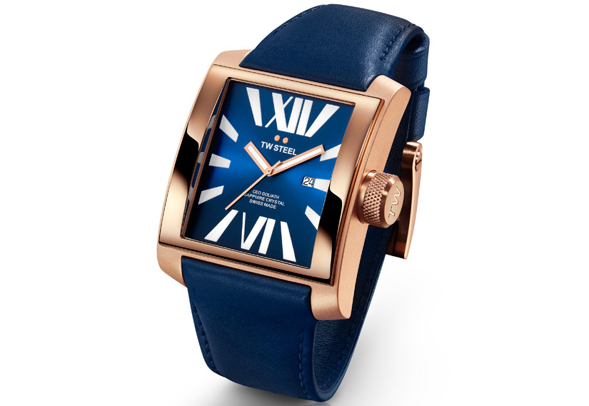 TW STEEL horlogeband CEO GOLIATH CE3018. Deze originele blauw leer horlogeband van TW STEEL heeft een breedte van 30mm en heeft een ros?goud gespsluiting. Deze horlogeband past aan alle TW STEEL CEO GOLIATH horloges met een aanzet van 30mm.