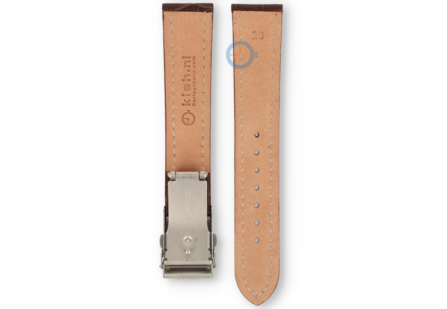 Horlogeband met vouwsluiting 20mm donkerbruin leer