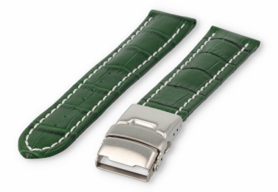 Deze stijl horlogeband is tijdloos en kan aan ieder horloge gedragen worden. Het comfortabele groene leer bestaat uit 2 delen. De bovenlaag is kalfsleer en de laag die je op de huid draagt is gemaakt van kalfsleer nubuk. Dat geeft een prettig gevoel en irriteert niet.