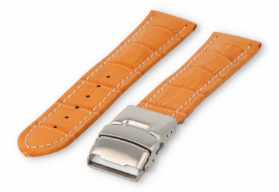 Deze stijl horlogeband is tijdloos en kan aan ieder horloge gedragen worden. Het comfortabele oranje leer bestaat uit 2 delen. De bovenlaag is kalfsleer en de laag die je op de huid draagt is gemaakt van kalfsleer nubuk. Dat geeft een prettig gevoel en irriteert niet.