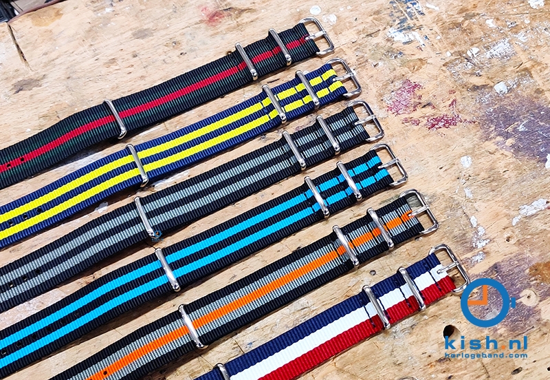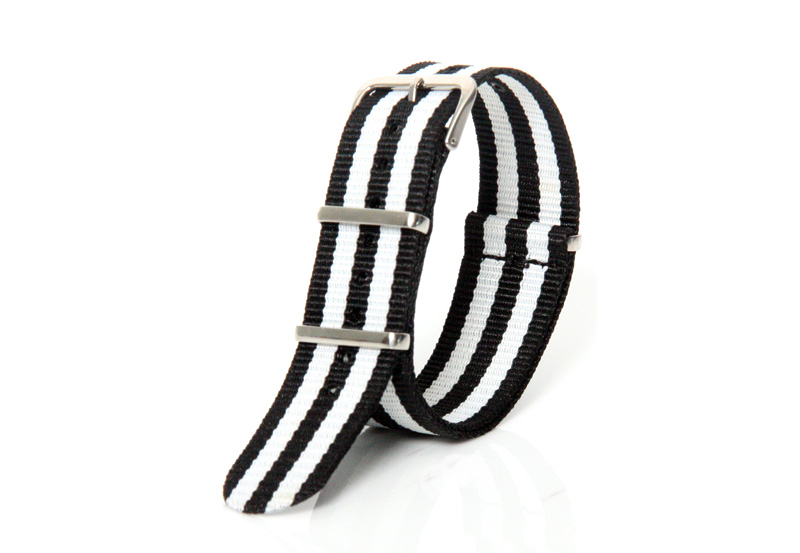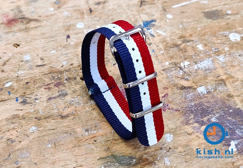 Deze universele nato horlogeband is gemaakt van ijzersterk geweven nylon. Deze horlogebandjes zijn oorspronkelijk ontworpen voor de Defensie, waardoor het horlogebandje de positieve eigenschappen heeft van het sterke nylon en het kan tegen een spatje water. Het streepje geeft het horlogebandje een sportieve look en past zo bij elk type horloge. Deze horlogeband heeft extra stevige lugs, wat voor stabiliteit zorgt.