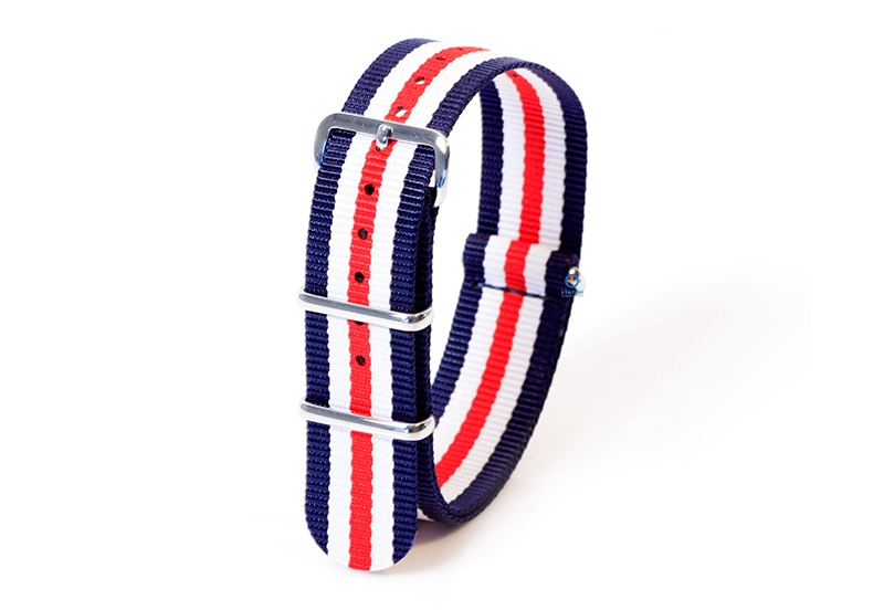 Horlogeband nylon 20mm blauw/wit/rood