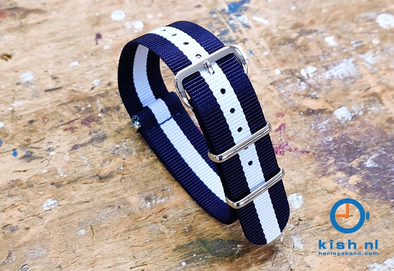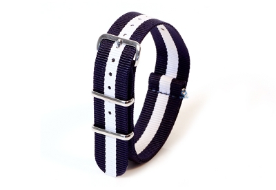 Horlogeband nylon 20mm donkerblauw/wit