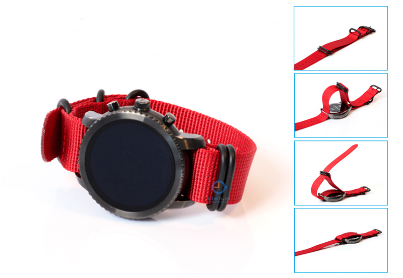 Horlogeband nylon 22mm oranje. Deze sportieve nylon horlogeband is 22mm breed en wordt gesloten met een zwarte gesp. De gesp is afgewerkt met een speciale PVD coating, dit betekent dat de gesp een speciale beschermlaag heeft. In slechts 4 stappen is deze zulu style horlogeband bevestigd aan je horloge. Bekijk hiervoor de gedetailleerde afbeelding. Bestel ook de 22mm springbars en een springbar removal tool mee om je horlogeband nog makkelijker te vervangen.