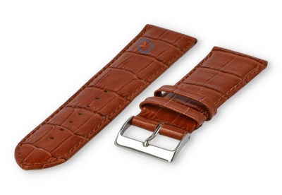 Horlogeband van kalfsleer - 26mm - bruin. Licht gewatteerde horlogeband met een croco relif voor luxe uitstraling. Deze horlogeband is deels gemaakt van echt leer (onderkant, draagvlak). Deze horlogeband van echt leer is 26mm breed en loopt terug naar 24mm. Je ontvangt dit leren bandje inclusief de roestvrijstalen gespsluiting in zilverkleur.