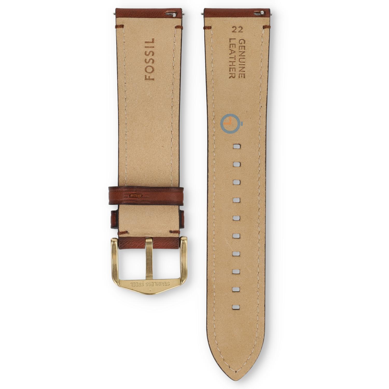 Fossil horlogeband speciaal gemaakt voor de FS6113. Deze originele band is gemaakt van bruin leer. De band is voorzien van een 22 mm rechte aanzet en je bevestigt deze gemakkelijk zelf met spring bars en een spring bar removal tool.