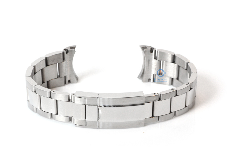 Deze zilvergekleurde stalen horlogeband is deels gepolijst en heeft een ronde aanzet, zodat het bandje perfect aansluit op de horlogekast. De band wordt geleverd inclusief roestvrij stalen vouwsluiting. Bestel gelijk een set springbars mee en de springbar removal tool voor het nog sneller vervangen van je horlogeband.