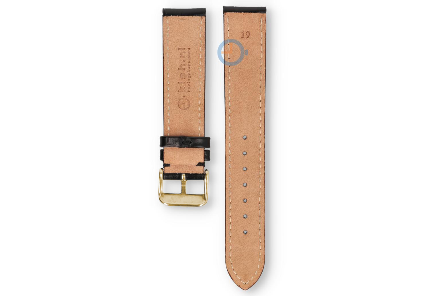 19mm bandje van croco leer - zwart. Dit horlogebandje heeft een oneven maat: 19mm. Het leer heeft een luxe crocoprint gestansd en heeft een klassiek Tone-in-Tone stiksel. De goudkleurige gesp is in hoogglans staal en wordt gemonteerd meegeleverd.