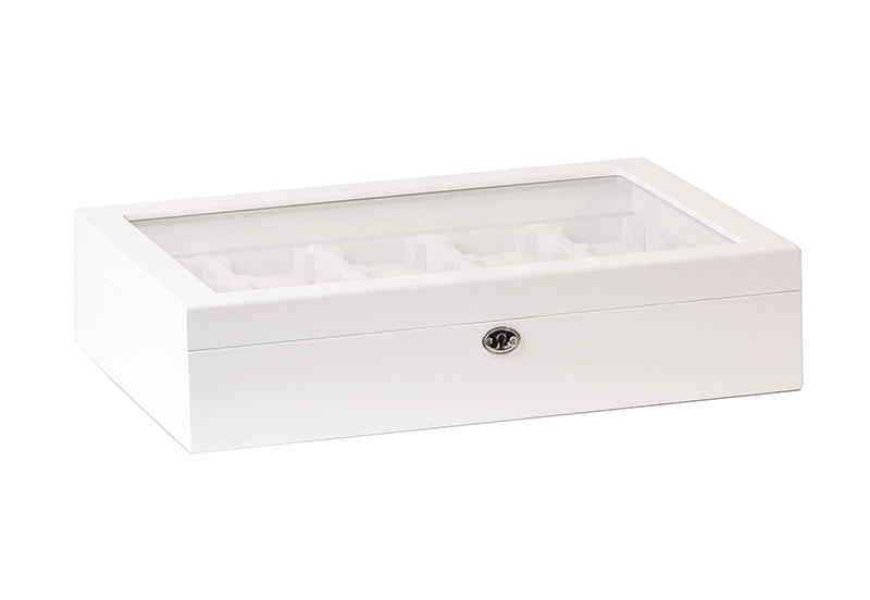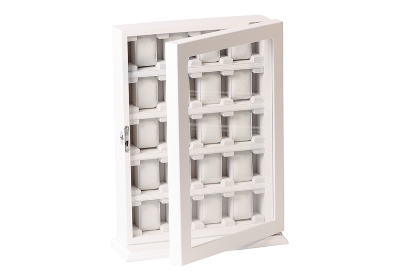 Deze horlogevitrine ziet er niet alleen te gek uit, maar berg je jouw horloges ook veilig op. Deze horlogevitrine is gemaakt van hout en biedt plaats aan 20 horloges. Deze vitrine is afgewerkt in een prachtige witte kleur.