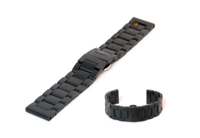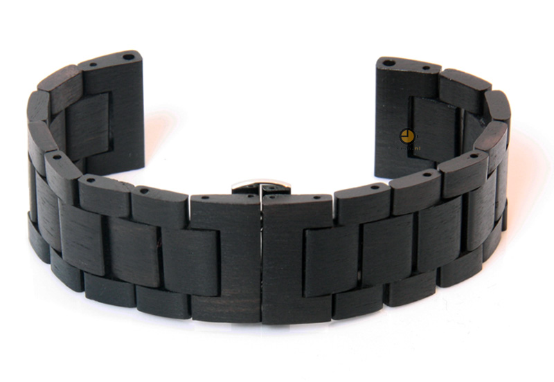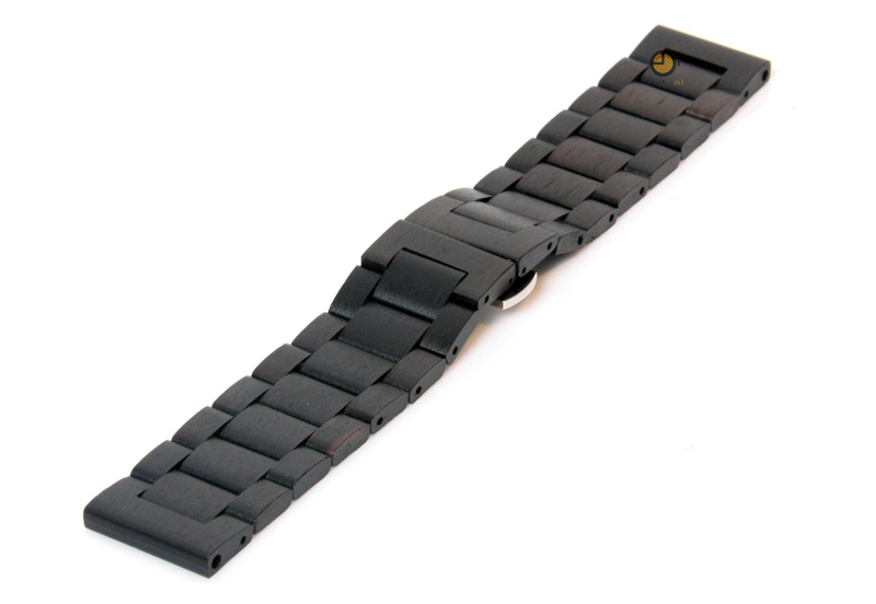 Exclusieve horlogeband gemaakt van echt hout. Deze 24mm horlogeband is uniek, omdat niet ?n stukje hout hetzelfde is. De geschakelde horlogeband is gemaakt uit Blackwood. Een sterk hout uit Tasmanië, wat makkelijk te bewerken is en een lange levensduur heeft. De 24mm houten horlogeband heeft een vlindersluiting met drukknoppen gemaakt van roestvrij staal.
