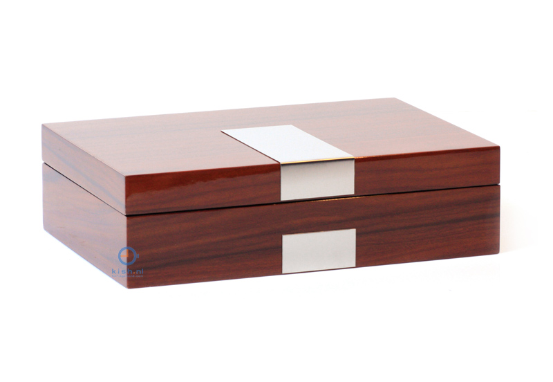 Deze horlogekist biedt plaats aan 8 horloges. Extra grote horloges zijn geen probleem, doordat de kussentjes extra breed zijn. Dankzij de ruimte tussen de kussens en het deksel maken de horloges geen contact met het venster en wordt beschadiging voorkomen.