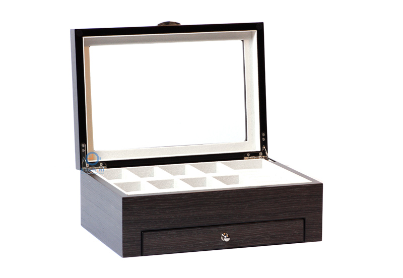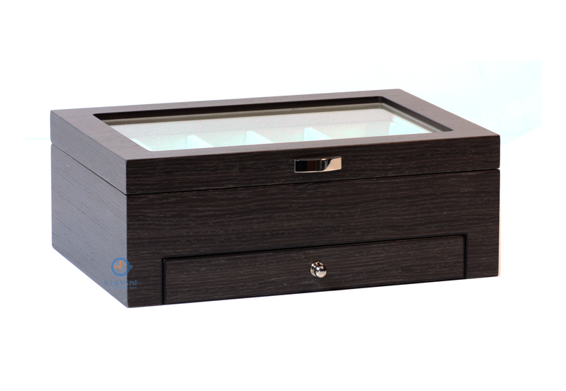 Dankzij de ruimte tussen de kussens en het deksel maken de horloges geen contact met het venster en wordt beschadiging voorkomen. In de lade berg je veilig je sieraden op.